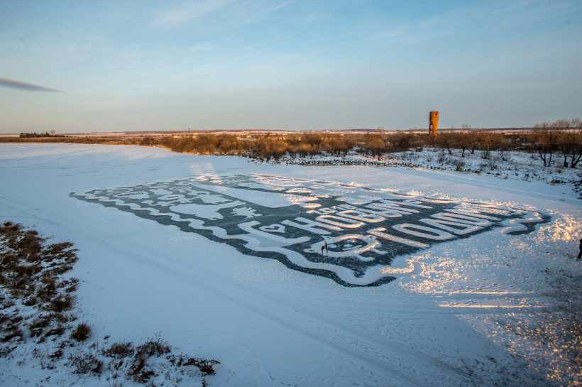 В этом году художник даже заждался морозов и зимних осадков, работу над открыткой начал позже. Теперь проводит на Хомутине дни напролет, догоняя упущенное время. По задумке деда Валерия, впервые ледовая картина должна засиять новогодними огнями. «Чтобы с Марса увидели!» — смеется Валерий Мельников.