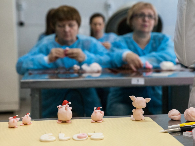 — Сегодня у нас проходит второй день обучения, вчера с девочками делали начинку для торта, а сегодня лепим декор — символов будущего года, — рассказала кондитер. — И они не просто из мастики, а из шоколада. Трудности работы с шоколадом всегда возникают, потому что это капризный материал. С ним нужно работать быстро и четко, пластичная масса капризна в приготовлении, но зато то, что вы слепите, будет красивым и вкусным.
