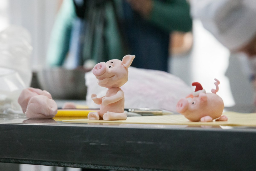 «А сейчас скальпелем будем делать улыбку» — эта фраза звучала бы жутко, если бы ее не произнесли на мастер-классе по украшению торта, а точнее, лепке символа будущего года — милого поросенка. Вчера в Амурском колледже сервиса и торговли для всех желающих кондитеров провели бесплатный мастер-класс «Приготовление новогодних тортов, декорированных пластичным шоколадом». Как правильно украсить новогоднее лакомство, узнали и корреспонденты «Амурской правды».