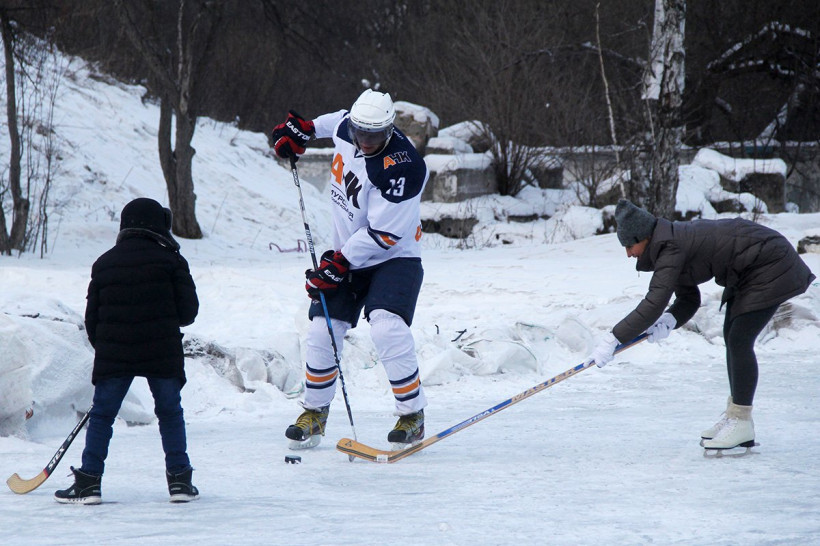 Дмитрий Мамонтов — игрок хоккейной команды в Благовещенске. Говорит, стоять на коньках научился раньше, чем ходить. А клюшкой управляет так, словно это продолжение его руки. Гонять шайбу вместе с Дмитрием вышли и дети, и волонтеры. Несмотря на то что профессионал как минимум забил две шайбы дебютантам, баталии закончились дружеским рукопожатием.