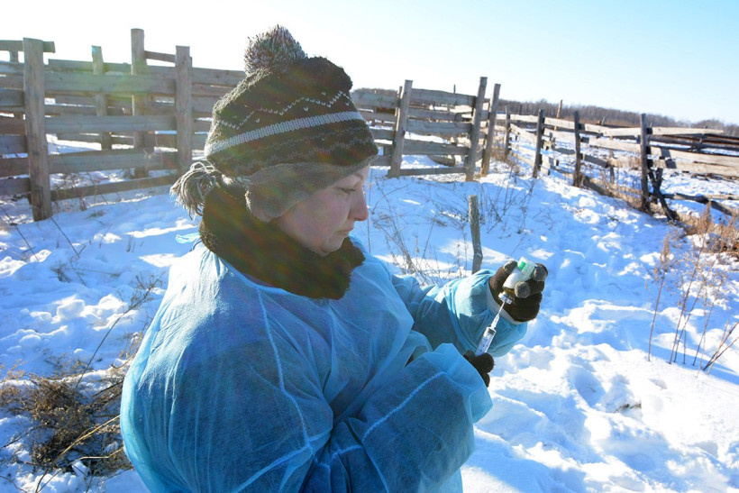 С начала декабря ветеринарный врач Яна Парада работает без выходных, не считаясь с личным временем. Ее рабочее место — свежий воздух и мороз под тридцать градусов. В женских руках — мощный заслон для вируса бешенства. Вместе с коллегами молодая женщина ставит прививки коровам, лошадям, козам и овцам. Изо дня в день ветеринарные бригады переезжают от села к селу, от одного фермера к другому. Работы много, уже к концу недели в Михайловском районе должно быть привито почти шесть тысяч животных. Причиной для экстренных мер послужили тревожные сообщения — бешенство обнаружено у диких животных. Сейчас важно не дать болезни распространиться на сельскохозяйственные предприятия.