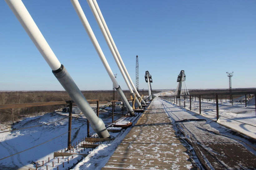 Параллельно собираются пилоны для опоры № 8 перед третьей, заключительной стадией надвижки. К весне пролетные строения встанут в проектное положение. Стыковка российской и китайской частей моста запланирована на вторую половину марта. Сдача объекта намечена на декабрь 2019 года, сообщает пресс-служба минтрансстроя Амурской области.