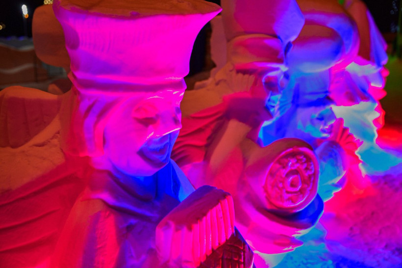 По традиции площадь украшают 22 снежные фигуры и 25 ледовых. Часть выполнена по эскизам горожан.