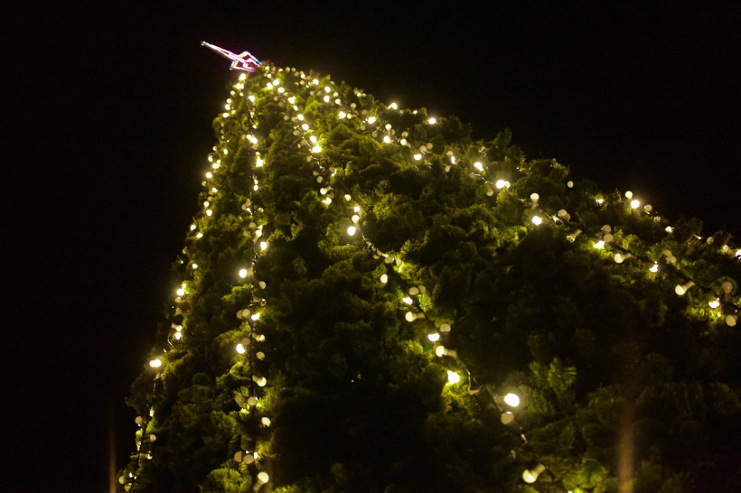 Впервые на площади появился светящийся елочный шар высотой четыре метра.