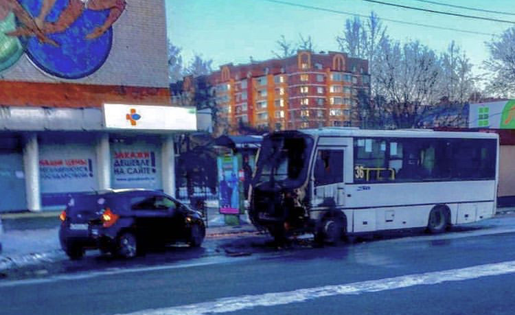 Первое января пожарные областного центра выехали на необычный вызов — на остановке по улице Красноармейской загорелся пассажирский автобус.