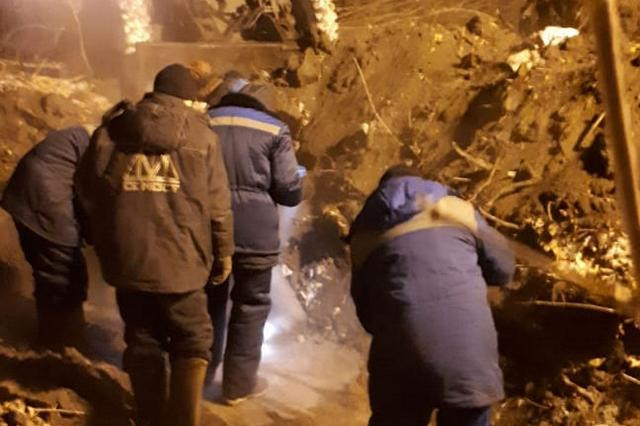 На место коммунальной аварии сразу выехала оперативная группа из 6 человек и 3 единиц техники. Бригада вскрыла грунт: труба диаметром около 90 миллиметров с высокой степенью износа лежала на глубине 1,5 метров. Для обеспечения работы экскаватора была обесточена ТП-52. Воздушные линии электропередач находились над теплотрассой.