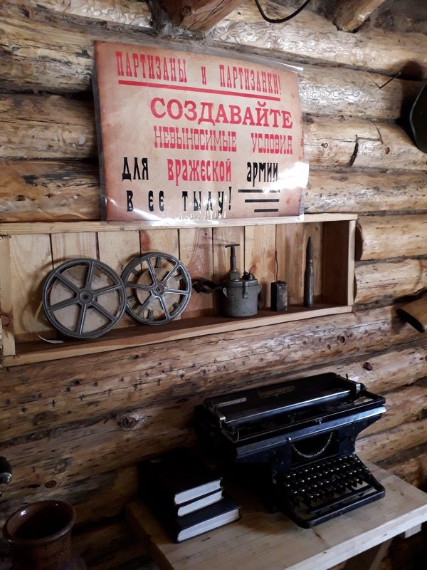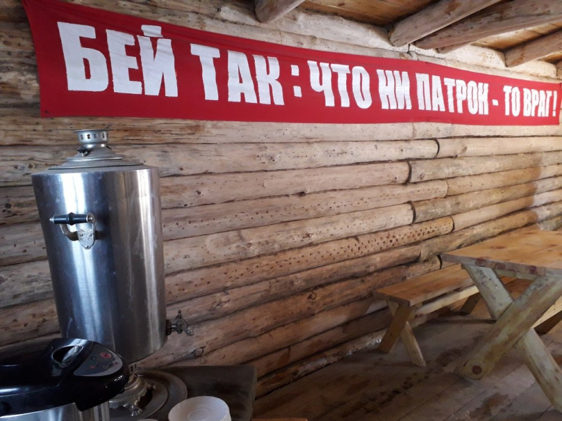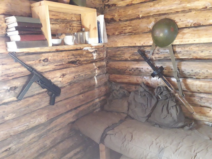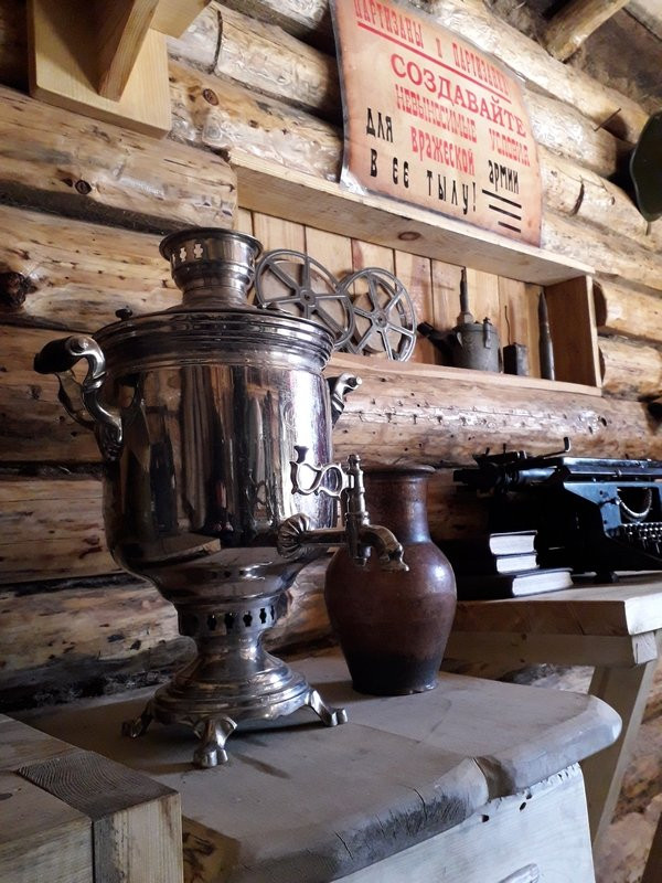 Жилые землянки, партизанский штаб, красная комната — каждый объект «деревни» уникален и готов хоть сейчас к приему личного состава. На улице февральский мороз, а внутри уютно и тепло от печек-буржуек. Каждая деталь, включая самовары и боевые лозунги, восстанавливались с максимальной исторической достоверностью. Даже партизанскую баню можно в любой момент растопить и помыться.