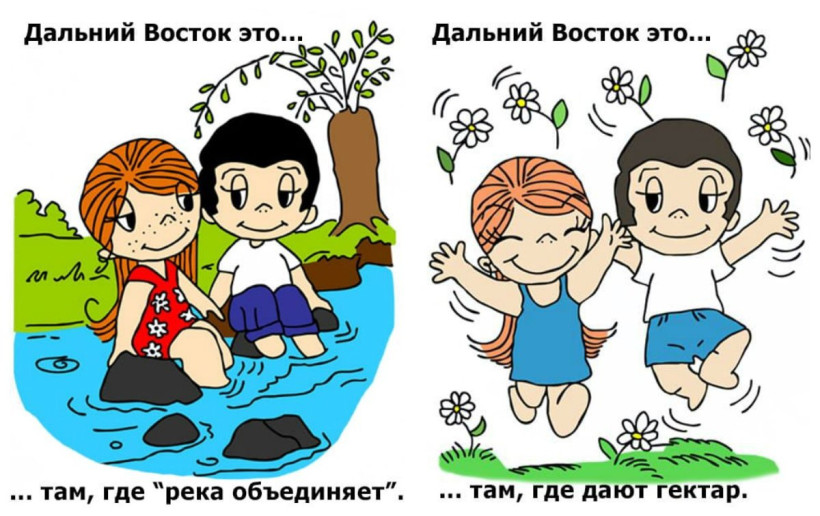 «Дальний Восток — это там, где вечная мерзлота, но горячее сердце», «Дальний Восток — это там, где любовь» — в День влюбленных пресс-служба Министерства по развитию Дальнего Востока запустила в соцсети забавные «валентинки». Они напоминают фантики от популярной в 90-х годах жевательной резинки «Love is...» Только авторы современных признаний решили сделать ставку на особенности жизни в ДФО. Несколько поздравлений относятся и к Амурской области: «Дальний Восток — это там, где соевые поля» и «Дальний Восток — это там, где река объединяет». Жители регионов активно рассылают патриотические «валентинки» через мессенджеры и размещают в соцсетях.