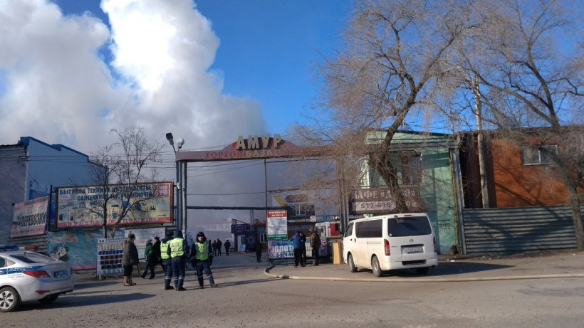 Пожар на складе торговой базы «Амур» в Благовещенске тушат 49 человек и 15 единиц техники. Огнеборцы нашли очаг возгорания. Это складское помещение, где хранятся в том числе и средства бытовой химии. Сейчас пожарные тушат и разбирают конструкции. Угрозы перехода пламени на соседние здания нет. При пожаре никто не пострадал и не погиб. Специалисты Роспотребнадзора замеряют воздух на наличие вредных веществ. Дым от огня распространился на промышленную зону. До ближайшего жилого дома — 500 метров.