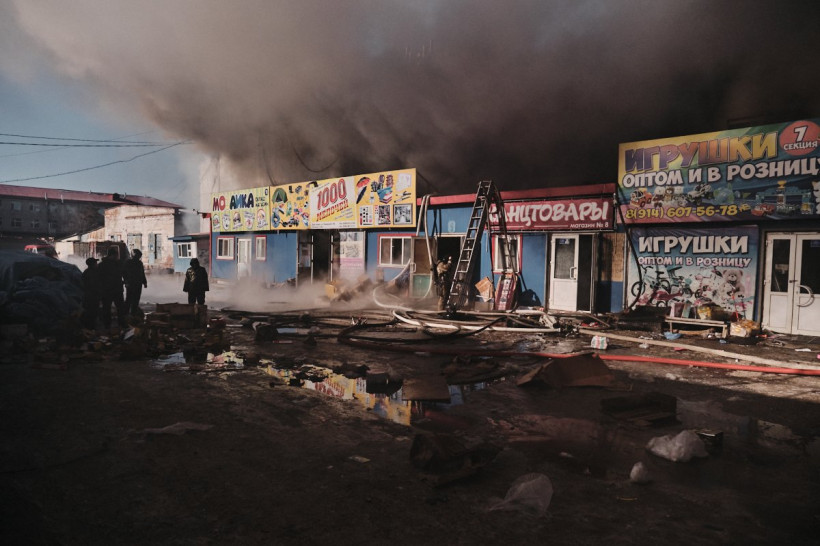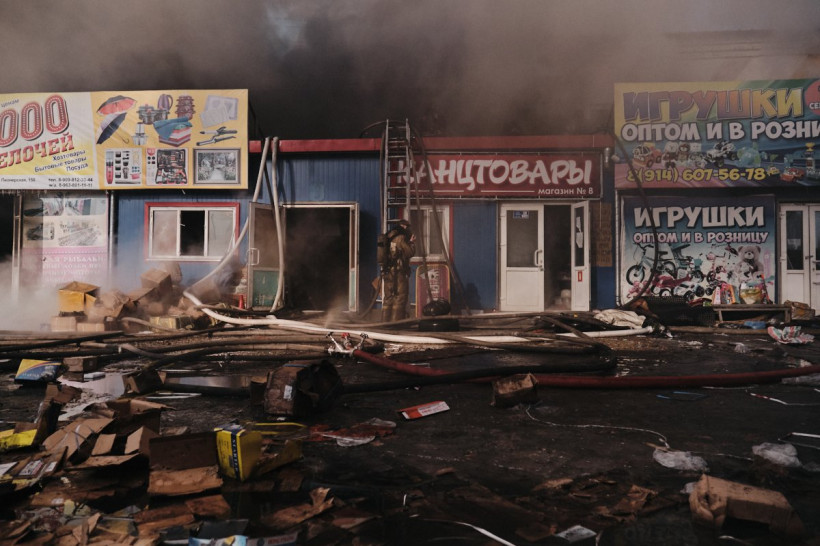 База в огне: фоторепортаж с пожара на складе «Амур» в Благовещенске