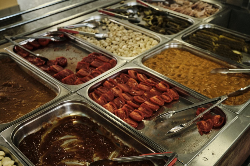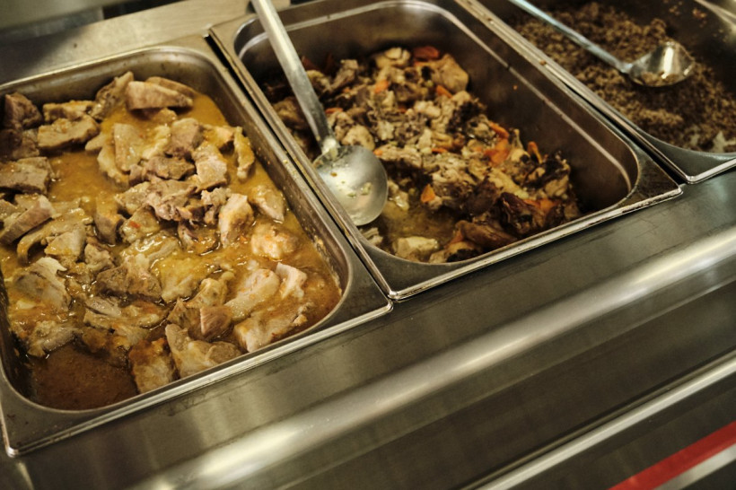 Если бы не люди в камуфляже, эта столовая ничем бы не отличалась от любой точки общепита: индивидуальные подносы, на стеллажах несколько супов, гарниров и разные сорта мяса — птица, свинина, говядина. Поодаль — так называемый салат-бар со свежими салатами. На курсантской кухне действует одно обидное правило: отведать все блюда нельзя — нужно выбирать. Так положено по норме.
