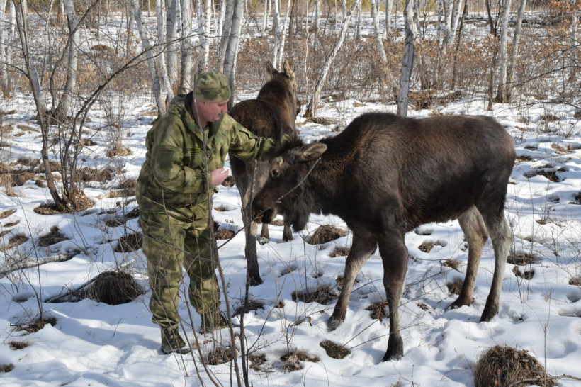 Сотрудники Центра охраны природы «Зейский» продолжают воспитывать маленьких лосят. Майя и Гаврюша подросли, облюбовали себе часть территории — подальше от уже разросшегося семейства изюбров, в удобных и богатых «лосиной» едой распадках. Малышей выкармливал охотовед центра. Пара зверят пока не боится людей, охотно позирует для фотографий и даже подходит к ним на близкое расстояние.