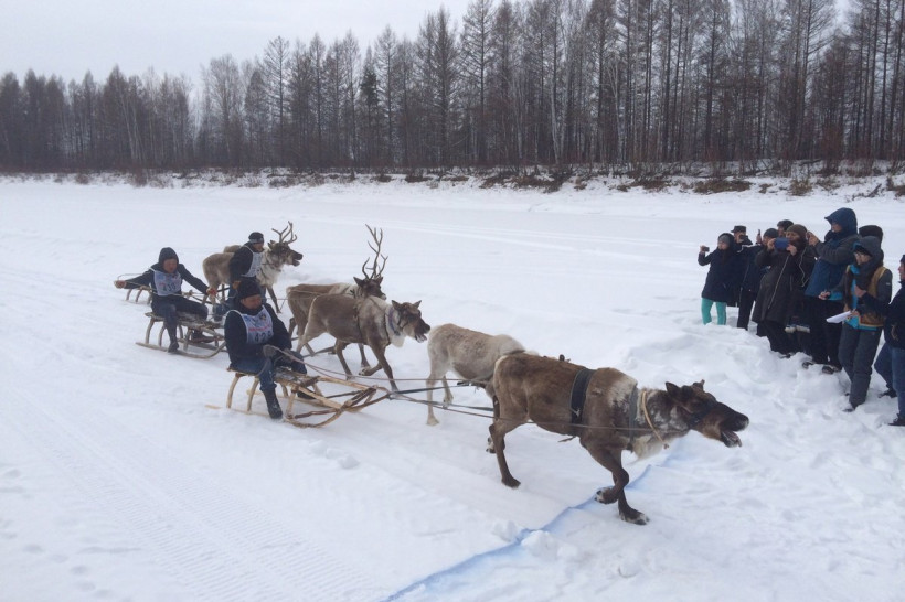 Самым зрелищным действом праздника стали заезды на оленьих упряжках. На дистанцию вышли как опытные оленеводы-мужчины, так и женщины. Чтобы не сбить оленей с пути, на финишную прямую выставили их сородичей. Первыми среди мужчин и женщин дистанцию преодолели Кирилл и Маргарита Николаевы. Вторые и третьи места заняли Максим Акимов, Александр Макаров, Ульяна Акимова и Капиталина Макарова. Победителям вручены телевизор и холодильник.