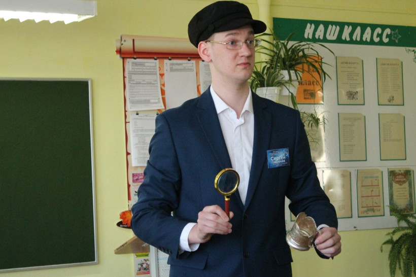 Открытый урок креативного молодого человека назывался «Откуда факты растут». На уроке-заседании исторического клуба Сергей рассказал ученикам о различных (и нетипичных!) исторических источниках (кроссовки, товарные чеки, фотографии) и научил ребят исследовать их. А после ученикам выпала возможность самим ощутить себя в роли исследователей. Каждой группе был дан предмет, глядя на который ученики должны были догадаться, для чего он и к какому времени принадлежит. Среди исторических источников, которые ребята анализировали, были: вещественные (зуб мамонта, икона, аппарат для создания газированной воды), письменные (документы), а также фотографии.