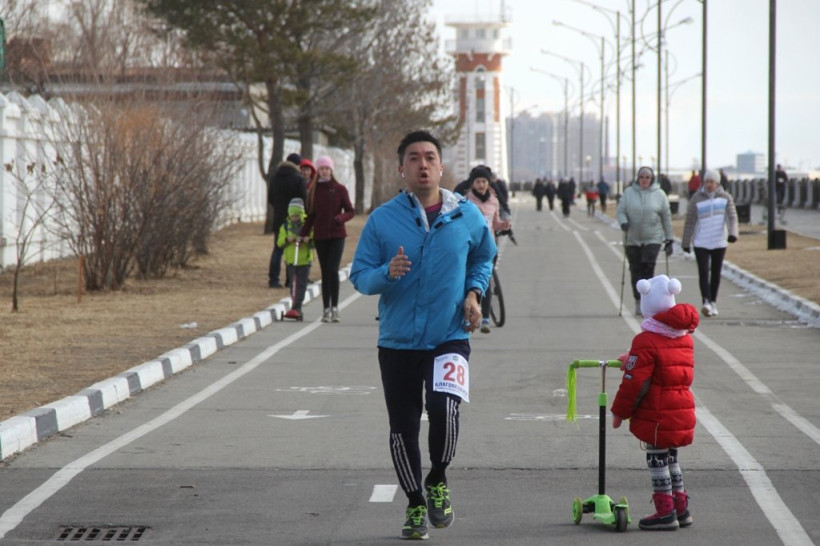 Местом забегов стала набережная реки Амур. Пока одни горожане спокойно прогуливались вдоль еще скованной льдом приграничной реки, около полусотни спортсменов измеряли набережную в километрах. Лидеры на двух дистанциях определились спустя метров 500.