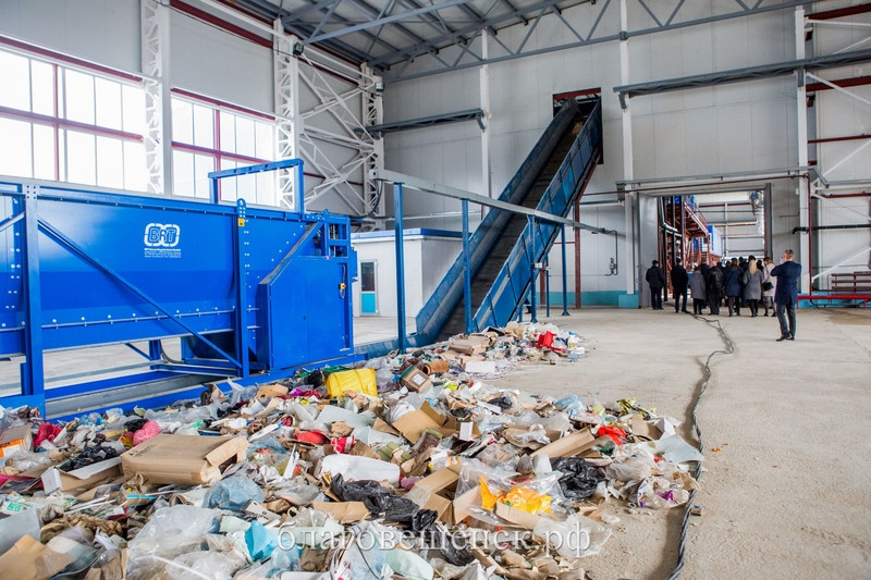 — Технология переработки мусора заключается в следующем: региональный оператор привозит твердые бытовые отходы на завод для их дальнейшей сортировки и переработки. Здесь они загружаются фронтальным погрузчиком в пакеторазрыватель, где емкости вскрываются, а отходы измельчаются и поступают в сортировочную зону. Стекло, картон, пластик, металл и дерево — все будет распределяться персоналом по отдельным резервуарам. Далее мусор следует по конвейеру, где сортируется по размеру. Кроме того, специальным магнитным сепаратором из него выделят черный металл. Далее все, что можно сжать, поступает на пресс, – рассказал алгоритм сортировки и переработки отходов Василий Иванов.