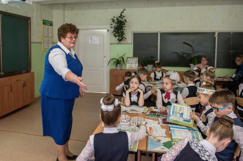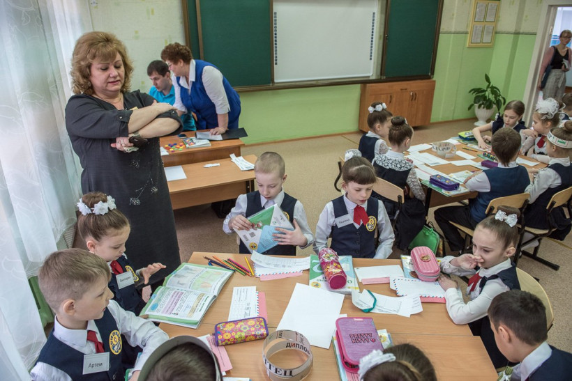 Показательные уроки начинаются с 8:30. Видно, что волнуются и конкурсанты, и дети, и их классные руководители. «Своим» учителям на занятии присутствовать нельзя, поэтому, после того как закрывается дверь кабинета, педагоги 25-й гимназии следят за подопечными с помощью онлайн-трансляции вместе с теми, кто приехал поддержать участников. Учитель начальных классов Валентина Булатова сдает свой экзамен одной из первых. Второму «Б» под ее руководством предстоит изучать признаки весны.