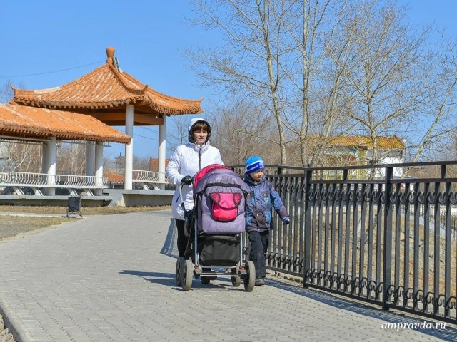 Апрель решил побаловать амурчан теплом. Вчера днем температура поднималась до 15-17 градусов. Сегодня, 27 апреля, по прогнозу амурского Гидрометцентра, воздух прогреется до 20 градусов. Такая же температура ждет жителей и в воскресный день.