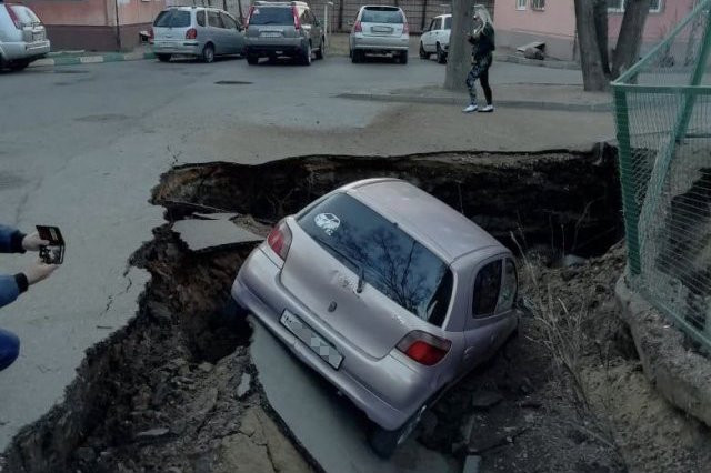 Сегодня, 1 мая, в районе жилого дома на Чайковского, 207/5 произошла просадка грунта — вместе с ним под землю провалился автомобиль.