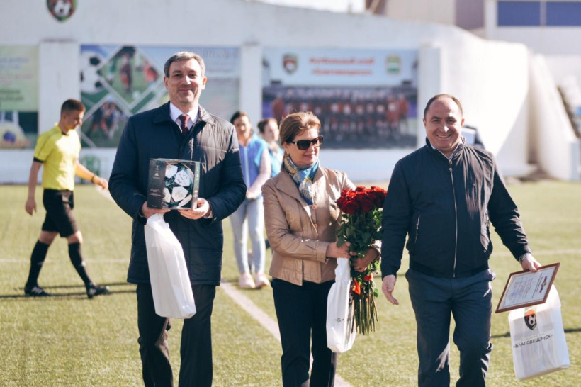 На церемонии открытия Василий Орлов вручил благодарственные письма губернатора за развитие и популяризацию футбола в Амурской области.