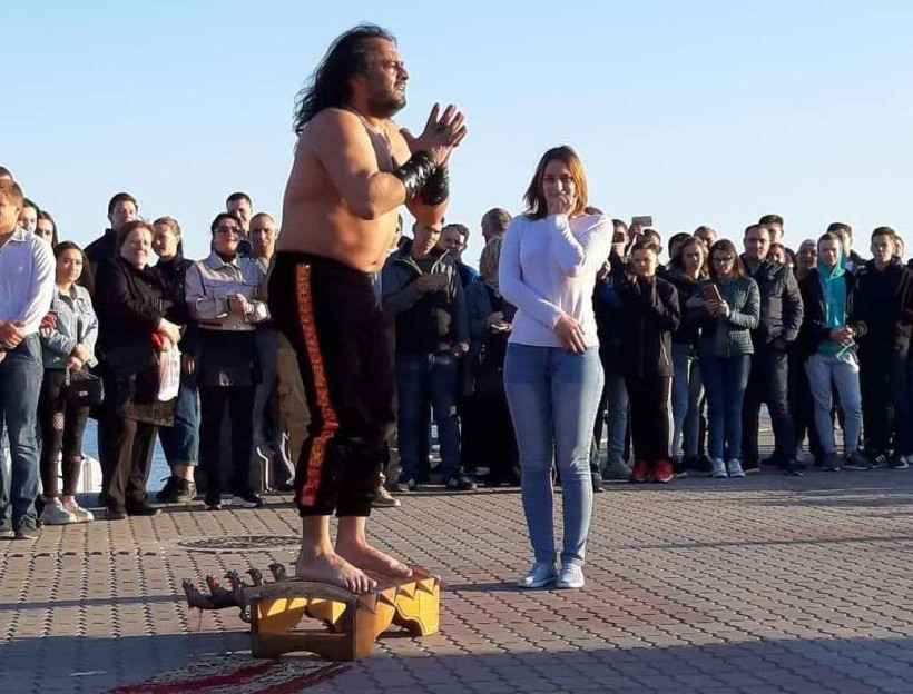 Машина переезжает человека — такой зрелищный трюк увидели вчера благовещенцы на открытии шестого сезона фестивального движения «Культурный город на набережной». Публику удивлял азербайджанский силач-йог Амир. Мужчина тащил джип и автобус своими волосами, а потом его переехал автомобиль весом в тонну.