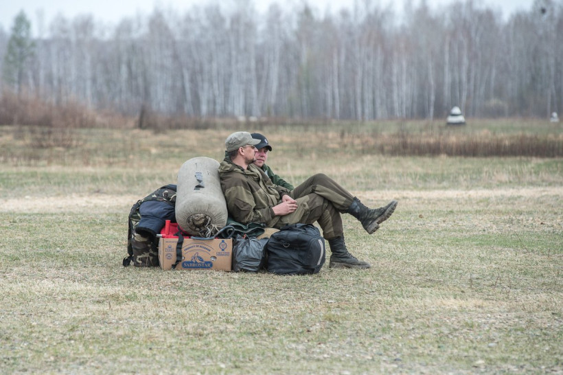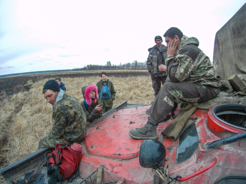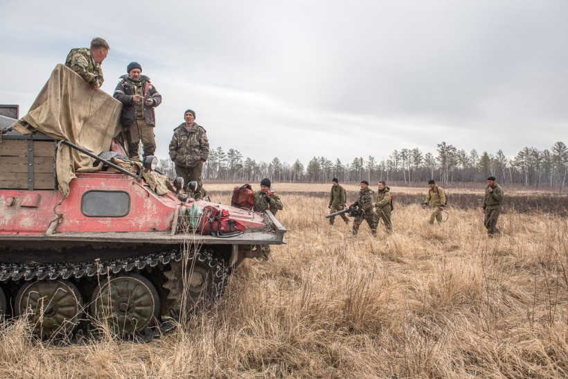 Погода, действительно, не подвела. Через 15 минут после высадки журналистов на местность случилось чудо — пламя исчезло. Только одинокие струйки дыма поднимались от черной земли. Бойцы не спеша подтягивались к вездеходу, снимая на ходу снаряжение. Кто-то жадно пил воду из железной кружки, кто-то просто садился на землю и прикрывал глаза. Огнеборцы признаются, что отдыхать успевают только на вездеходе или в вертолете по пути на следующий пожар.