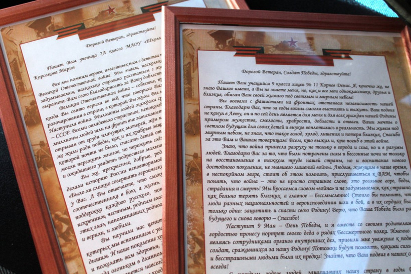 Письма написали школьники Благовещенска«Письмо ветерану» ко Дню Победы писали ученики 4—9 классов школ Благовещенска. Акция под таким названием прошла по инициативе Общественного совета при УМВД по Амурской области. В канун праздника главный полицейский Приамурья Николай Аксенов посетил на дому ветеранов органов внутренних дел — участников Великой Отечественной войны. Вместе с подарками Николай Николаевич вручил и теплые послания от детей. Их написали ученики 4—9-х классов с благодарностью ветеранам за стойкость духа, «что шли до конца и не сдавались», и за то, что «наша страна не стала частью Германии». «Амурская правда» приводит отрывки из детских писем. Орфография и пунктуация авторов сохранены.