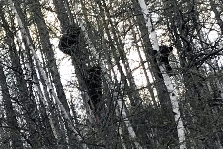 — Пятнадцатого мая у нас была информационная встреча с населением Берегового. На обратном пути, примерно в 10 километрах от паромной переправы через реку Гилюй, перед автомобилем перебежала дорогу медведица, — рассказал «Амурской правде» Дмитрий Василенко. — Мы проехали несколько метров и увидели трех медвежат — они сидели на деревьях. Мы остановились буквально на несколько секунд: я успел открыть окно и сделать на телефон несколько кадров. И тут же поехали дальше, потому что медведица стояла внизу и смотрела на нас пристальным взглядом.