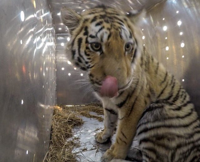 На видео — тигр перед отправкой из Приморья.