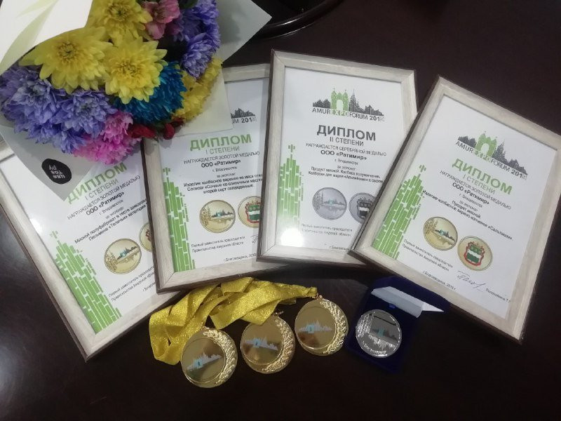 Три золотые и одну серебряную медаль получила продукция компании «Ратимир» в профессиональном конкурсе на международной выставке «АмурЭкспоФорум», прошедшей с 24 по 26 мая в Благовещенске.