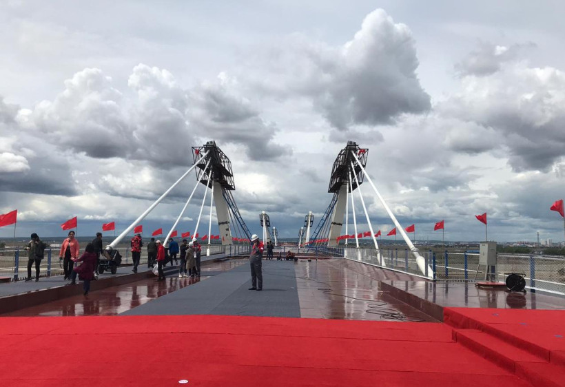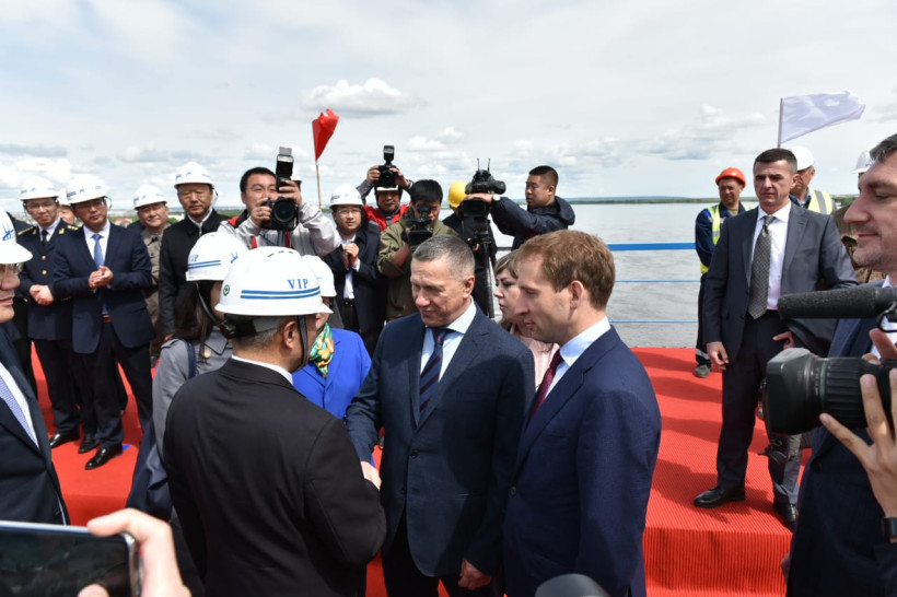 В пятницу, 31 мая, на реке Амур в районе Благовещенска и Хэйхэ состоялось историческое событие — стыковка российской и китайской частей моста через Амур. В церемонии приняли участие полпред в ДФО Юрий Трутнев, министр по развитию Дальнего Востока и Арктики Александр Козлов, губернатор Амурской области Василий Орлов, со стороны Китая — губернатор провинции Хэйлунцзян Лу Хао и мэр Хэйхэ Ма Ли. Они вкрутили символический болт посреди моста в месте, где произошла стыковка. В честь исторического события КНР сделало сюрприз и устроило на Амуре небольшой цветной фейерверк.