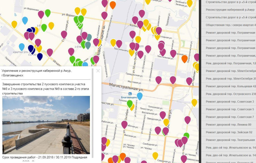 «Теперь каждый житель Благовещенска может увидеть, какой объем работы был проделан администрацией города совместно с депутатским корпусом. Как видно по отметкам, практически весь город охвачен теми или иными работами. Это и дворовые территории, и места массового отдыха, и дороги. Объектов оказалось очень много, безусловно, карта будет еще дополняться. А самое главное — теперь можно посмотреть, какая работа еще предстоит», — рассказала мэр города Валентина Калита.