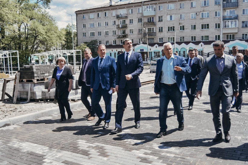 Губернатор оценил динамику работ по капитальному ремонту пришкольной территории и спортивной площадки средней школы № 8.