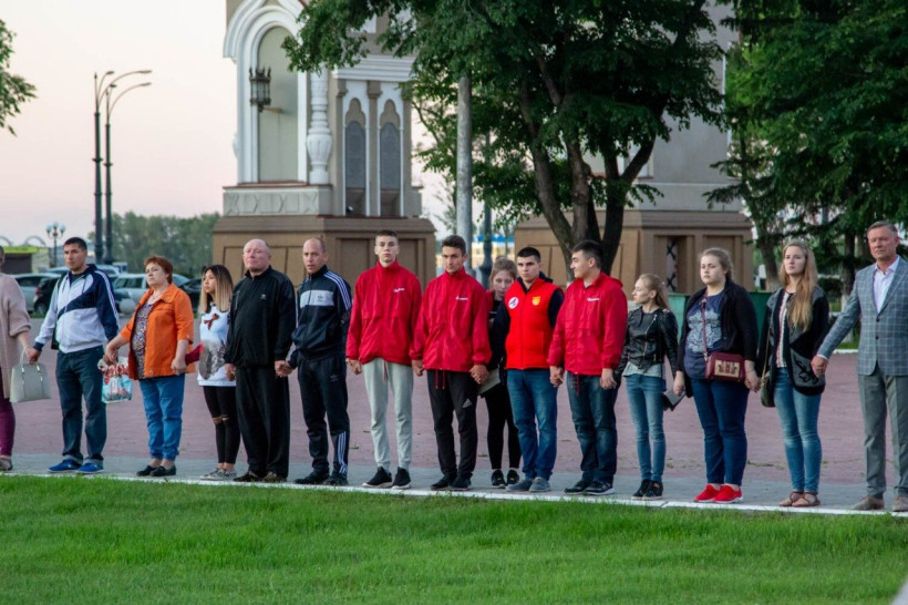 Собравшиеся зажгли десятки свечей и вместе установили их у подножия памятника воинам-амурцам, после этого участники мероприятия встали вокруг него, взявшись за руки, тем самым как бы «обнимая» площадь. Завершилась акция у подножия памятнику Труженикам тыла.