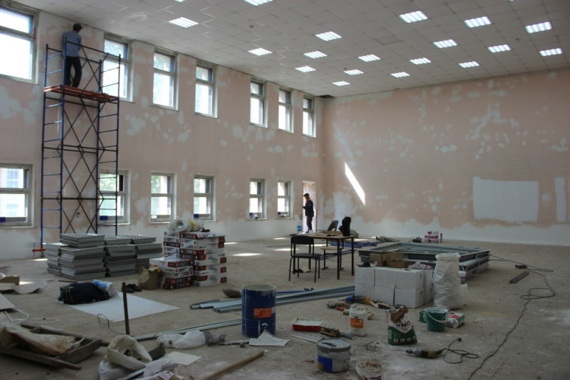 В зале, где через два месяца начнут играть подрастающие тындинцы, сейчас идет ремонт. Мастера установили новые потолочные светильники, убрали с пола старую плитку и начали ремонт стен. В ближайшее время поставят новые металлопластиковые окна, заменят систему отопления, смонтируют противопожарную и охранную сигнализации. Затем на пол положат огнеупорный линолеум.