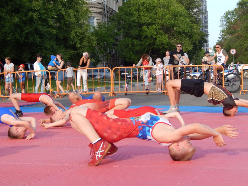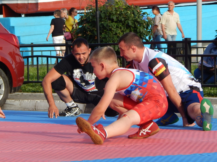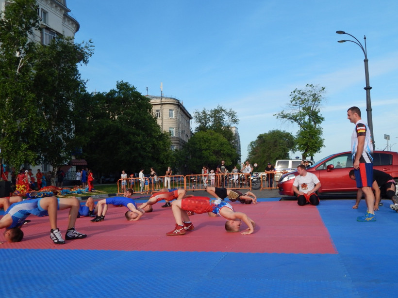 Не менее впечатляющими были и показательные выступления воспитанников «Федерации спортивной борьбы». Приемы вольной борьбы продемонстрировали 12 спортсменов разных возрастов. Самым юным из них было всего по пять лет, но ребята держались достойно наравне со старшими товарищами, выполняя все упражнения под руководством наставника.