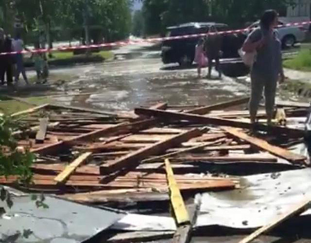 Непогода навела беспорядок на центральной улице Тынды. Сильный ветер сорвал с офиса крышу, ливень залил проезжую часть. Фотографии и видео последствий стихии в редакцию «Амурской правды» прислали читатели.