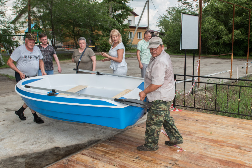 Глава села решила первой проверить новые лодки и без колебаний взяла в руки весла.