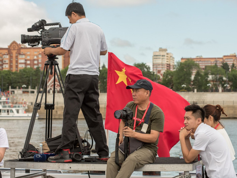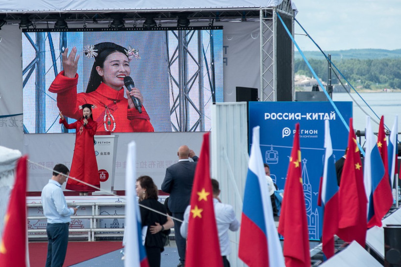 В ожидании церемонии на барже — российские и китайские песни о счастье и Родине. Приамурье представляла артистка областной филармонии, а Поднебесную — известная певица из Пекина. И даже ведущие торжества представляли две страны и говорили на двух языках.