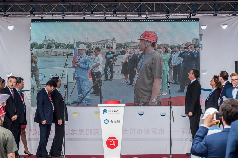 Утро, Амур, баржа с флагами России и Китая, сцена, около сотни гостей. Все — под контролем пограничников двух стран, ведь все проходит прямо на границе. Инициаторами того, чтобы старт исторического проекта вошел в историю, стали инвесторы — российская группа компаний «Регион» и китайская «Цзиньлунган». Проект будет на 100 процентов построен на частные средства.