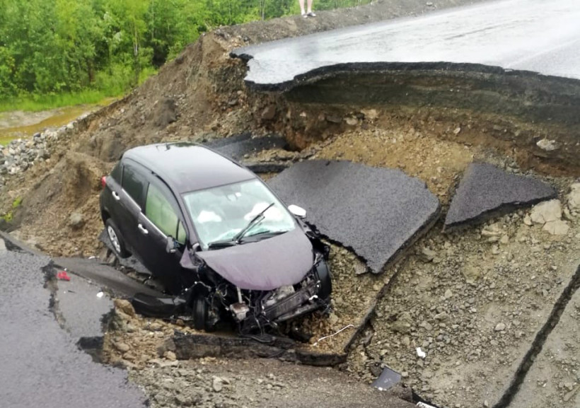 В пяти километрах от поселка Ерофей Павлович, на 834 км федеральной трассы Чита – Хабаровск, произошел провал дорожного полотна. Десятиметровый кусок асфальта обрушился вместе с проезжавшим в это время легковым автомобилем «Тойота-Витц».