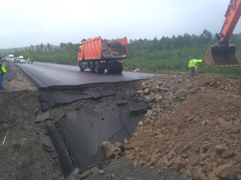 В администрации Сковородинского района проведено экстренное совещание, после которого объявлена чрезвычайная ситуация. Сегодня, 21 июля, на участке федеральной трассы «Амур» в районе поселка Ерофей Павлович произошло обрушение дорожного полотна вместе с автомобилем.