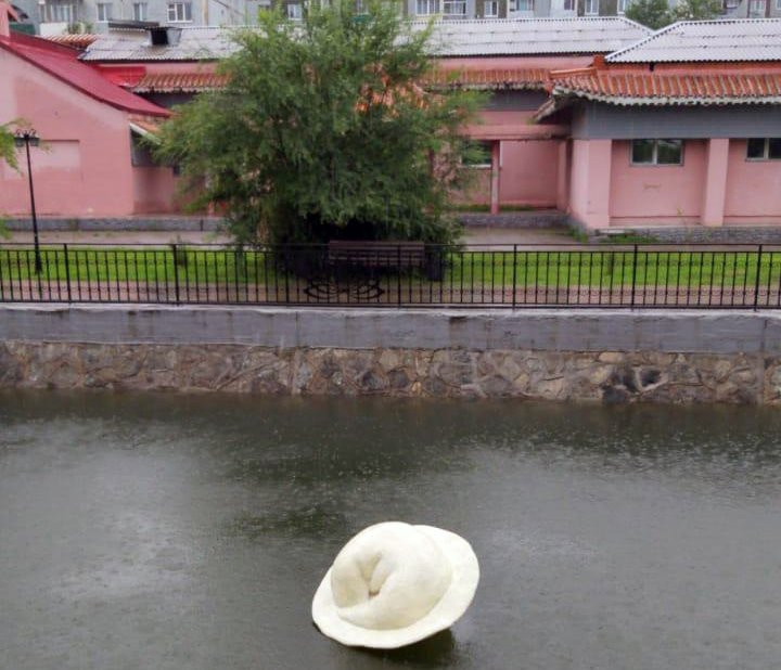 Новый арт-объект — 10-килограммовый пельмень — запустили в озеро парка Дружбы вечером 21 июля. «Это альтернативный символ дружбы России и Китая. Символично было его разместить именно в парке, который стилизован под китайскую архитектуру», — объяснили АП свою идею авторы из творческого объединения Д.О.Г. и Б.К.М.Б.