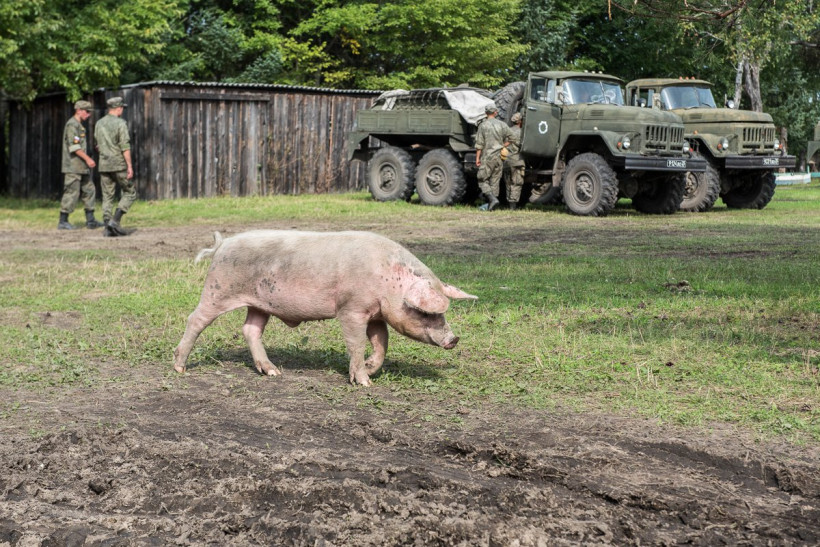— Прибыли из Хабаровска с первого дня, нас 100 человек разделили на четыре группировки и отправили по селам. Мы здесь остались, обеспечивали питание в ПВР Углового. Животные по брюхо в воде стояли, свиньи болели, мы им уколы ставили. Я деревенский, коров и коз, оставшихся без ухода, доил. У нас молоко было, кормили личный состав, — рассказывает начальник радиостанции Амурского спасательного центра МЧС Владимир Проценко о том, как переживший потоп скот работал на благо ПВР.