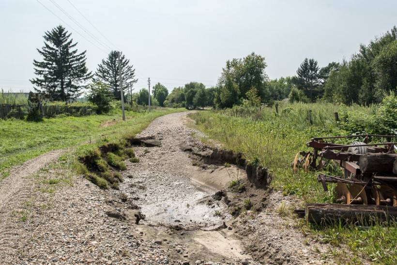 Дорогу в Богословку и Козловку размыло большой водой, на трассе глубокие промоины.