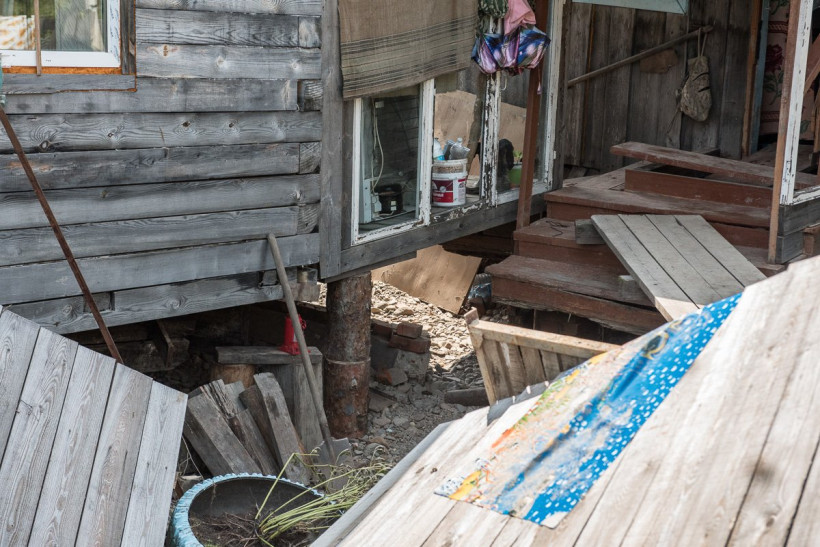 — От гаражей одни крыши. У соседей обрыв, а у меня на верблюдах можно ходить — сколько песка намыло. Под ним огород. Площадку детям своими руками построил, как в городе: качели, горка железная, грибочек. Все унесло! Дом мой на одной тумбе держится. Хороший дождь — и он рухнет. Была комиссия, заходить туда отказались. Страшно! — негодует Юрий Васильевич, оставшийся без крова.