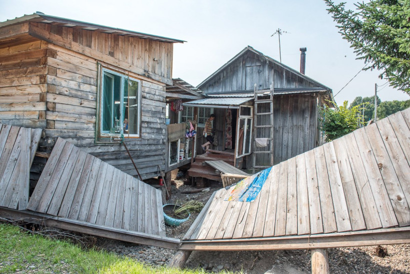 В здании хаос: тумбочки и столы перевернуты, по полу разбросаны бумаги и вещи, занесенные илом. «Течением двери с петель срывало! — рассказывает глава сельсовета и выносит вердикт: – Восстанавливать нечего. Большинство домов уже с трещинами, зимой их разорвет».