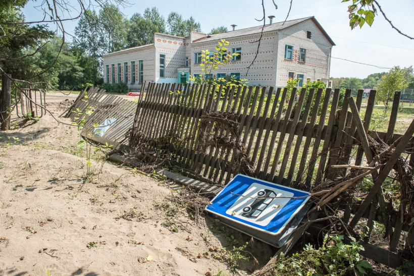 В смежные с сельсоветом клуб и библиотеку зайти не могут по сей день — от воды разбухли двери, взламывать их опасно. За закрытыми окнами погибают цветы. Местные власти уверены: внутри уже не осталось ничего ценного.