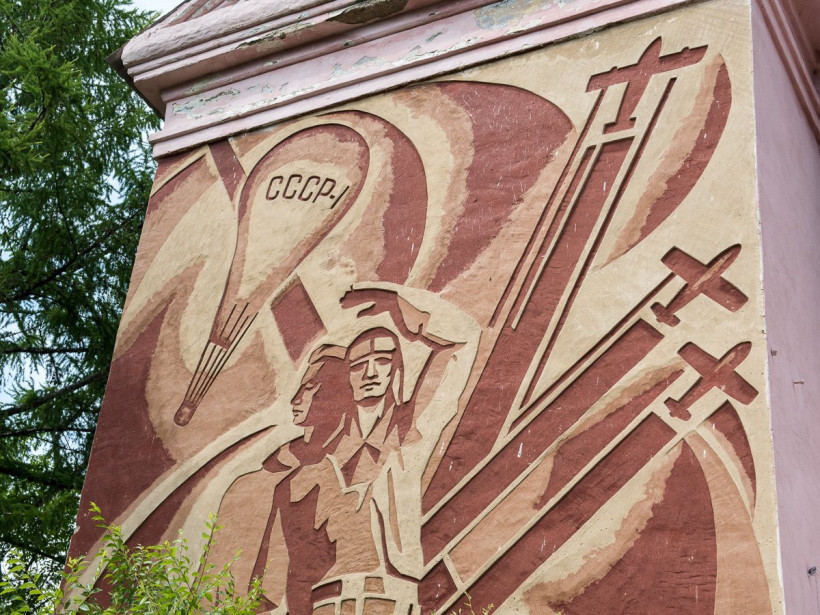 Советский Союз в Орлином действительно будто законсервировали. Вечный огонь, памятник Ленину перед бывшим гарнизонным Домом офицеров с панно во все стены в духе соцреализма. В заброшенных зданиях — советские атрибуты: пятиконечные звезды, серп и молот, сталинская лепнина и агитплакаты. Жилые дома — как иллюстрация менявшейся в разные советские периоды архитектуры.