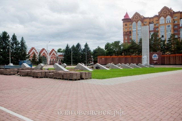 В столице Амурской области ремонтируют мемориальный комплекс на площади Победы. До конца октября рабочим предстоит заменить плитку и бордюрный камень, отреставрировать георгиевскую ленту в верхней части монумента и плитку на самом памятнике.